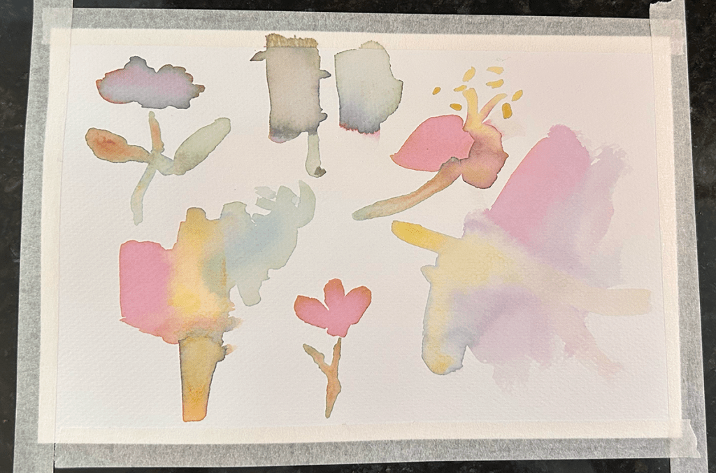 When you’re ready to take a break, let your art work dry. Notice how, even when you’re done painting, your artwork can transform. Your art work while it’s wet can look quite different than when it’s fully dry. You can continue to work on it if you’re inspired to do so, or you can leave it as it is. Change and transformation can happen whether we are actively pursuing it or not.
